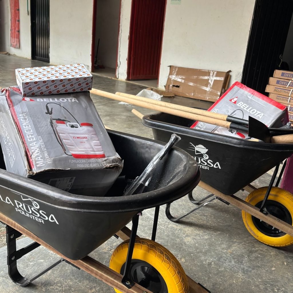 Asimismo, se entregaron fumigadoras manuales para labores de limpieza y mantenimiento de las áreas de recolección y tratamiento del pindo, zapapicos para la preparación del terreno y la extracción de la fibra, entre otras herramientas.