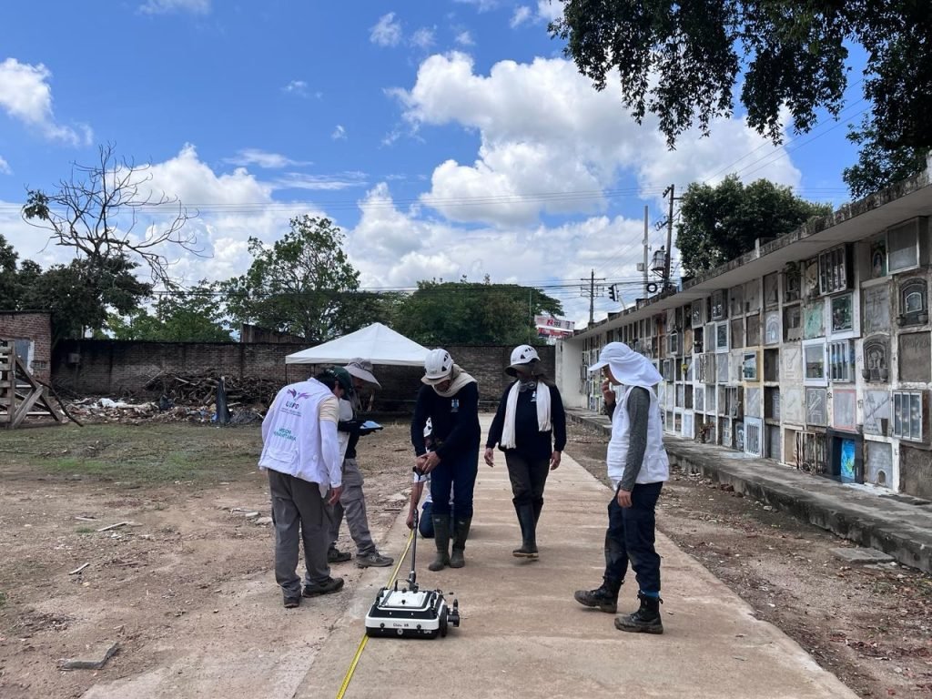 En esta ocasión, el equipo forense a cargo de la intervención en Huila contó con el apoyo de antropólogos y criminalistas de la Regional Sur de la Unidad de Búsqueda y de un profesional en geofísica encargado de la operación del georadar, instrumento con el cual, a través de ondas electromagnéticas, se logró explorar el subsuelo, como uno de los aspectos claves de esta misión.